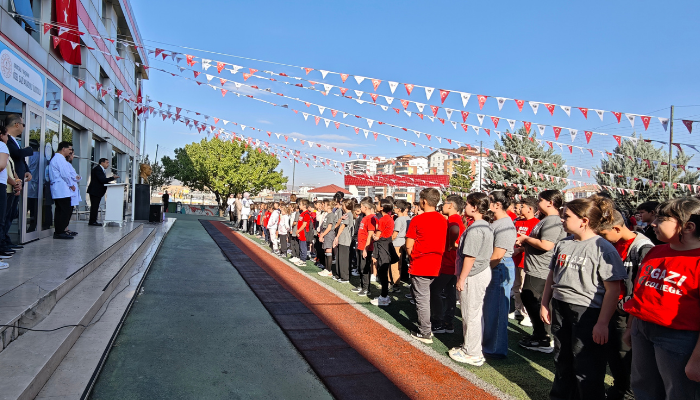 Özel Gazi Kolejinde öğrencilerimiz, her sabah coşku ve heyecanla bir araya gelerek tören yapıyor.